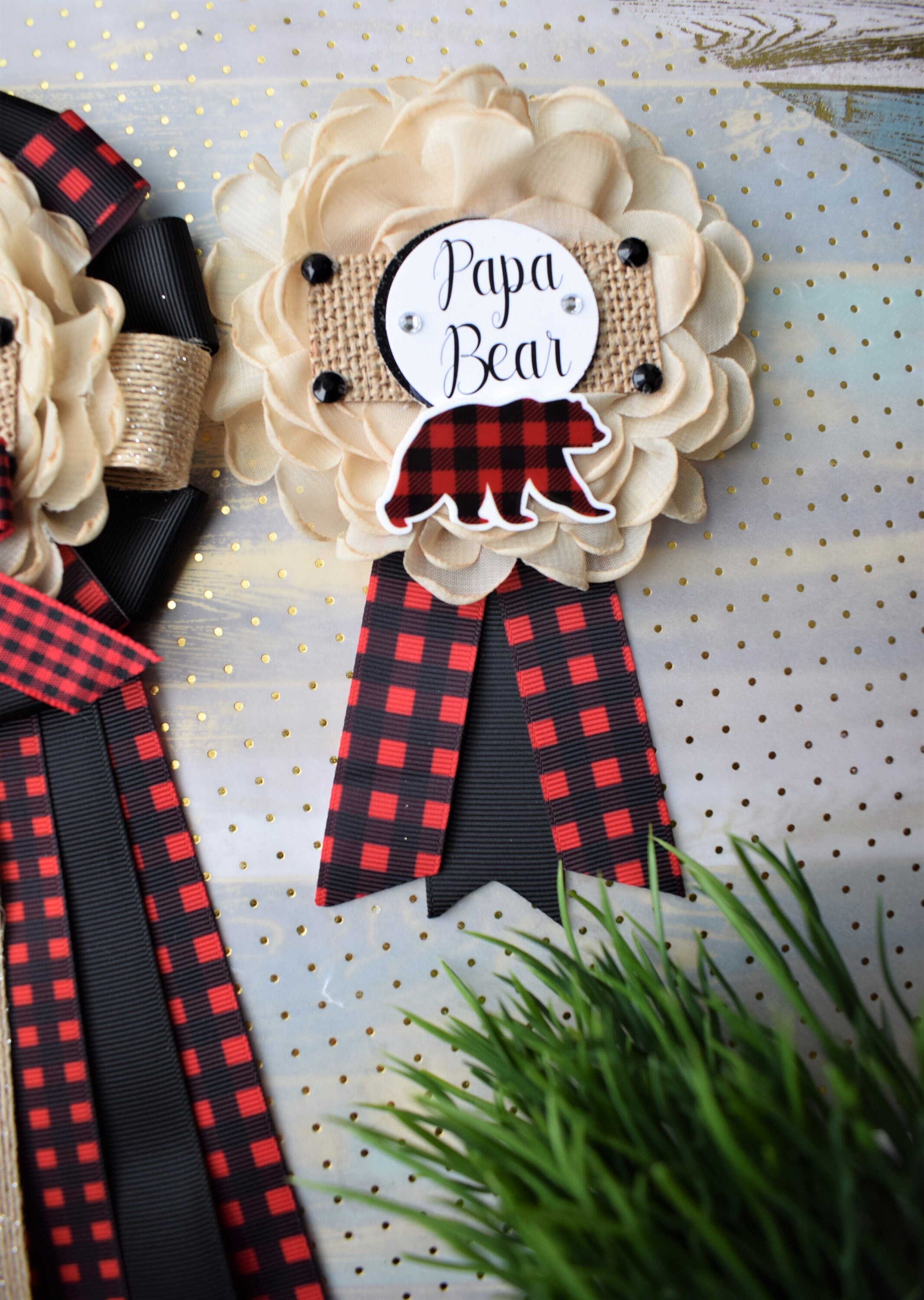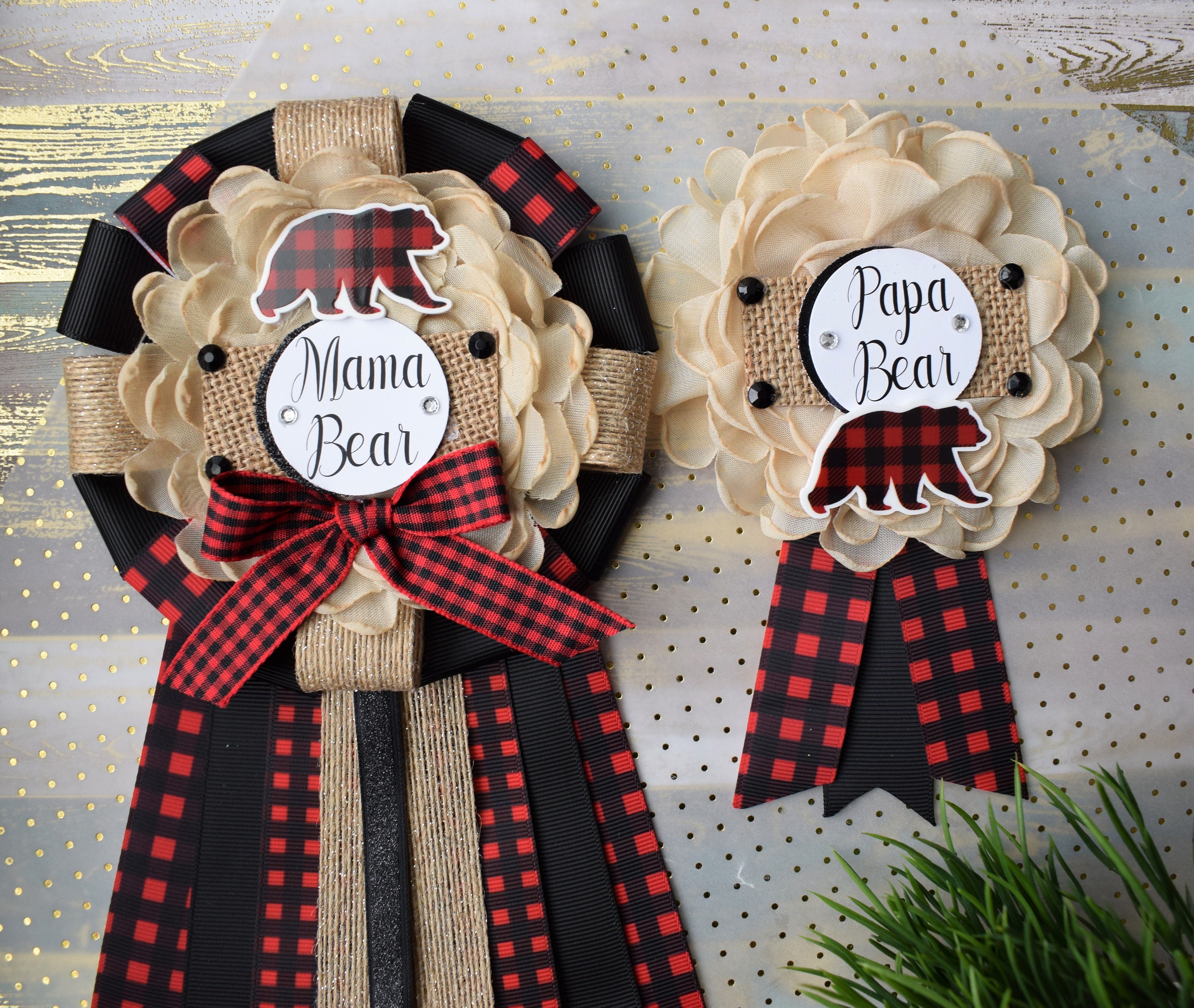 Mama Bear Corsage Pin, Buffalo Plaid Mommy Bear Baby Shower, Papa Bear Pin, Lumberjack Mommy Daddy To Be Corsage, Red Black Buffalo Plaid