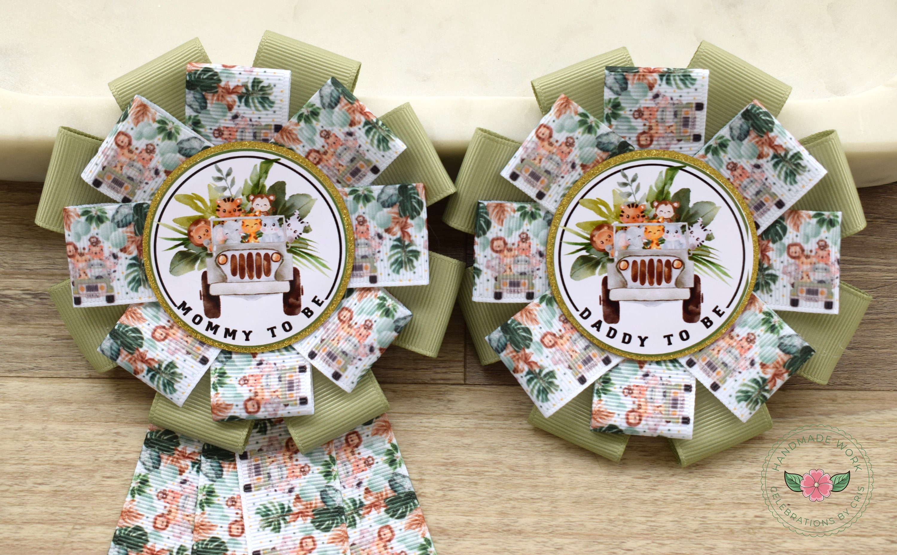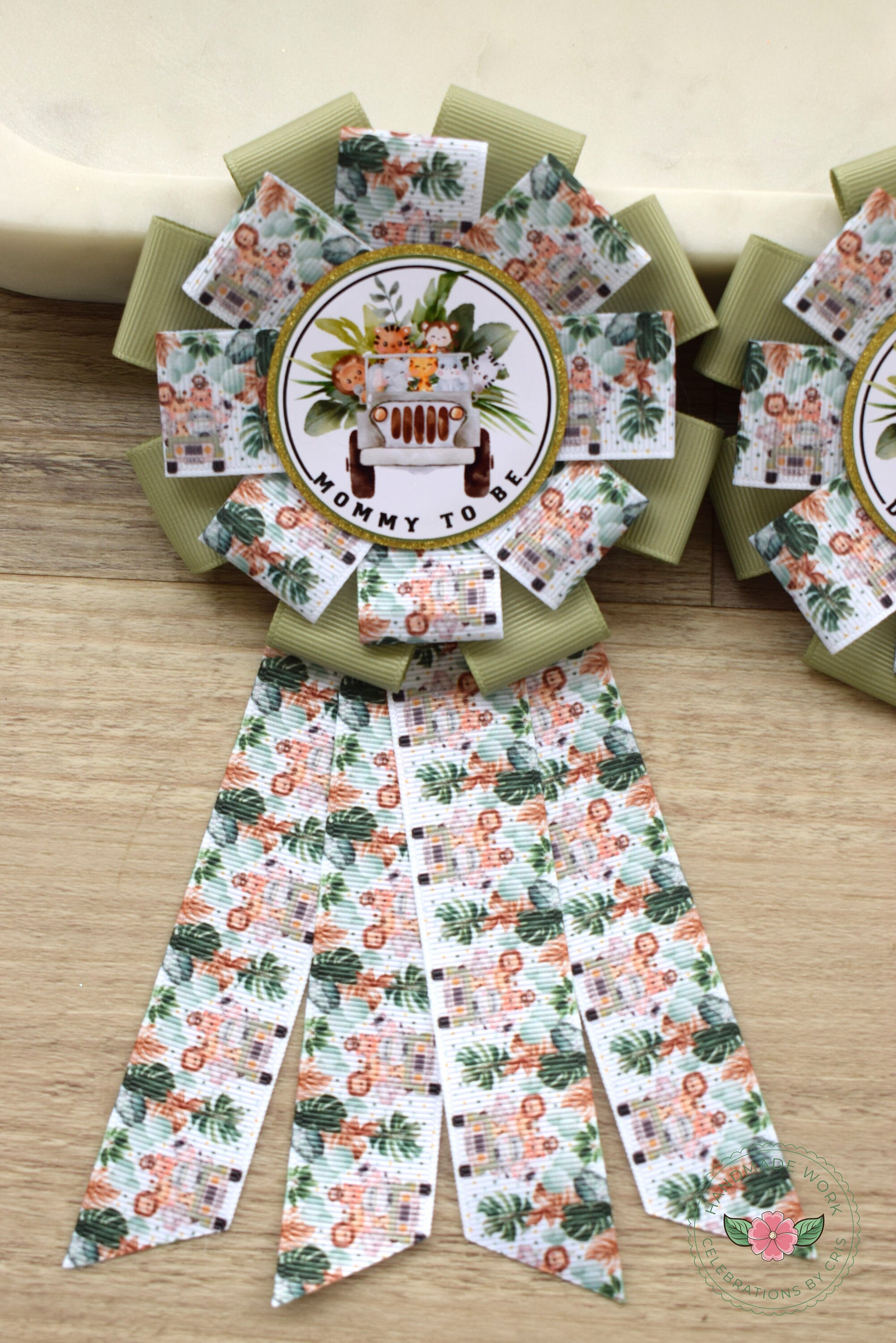 Jungle Safari Baby Shower, Safari Animal Mommy To Be Ribbon Pin, Animal Daddy To Be Badge Pin