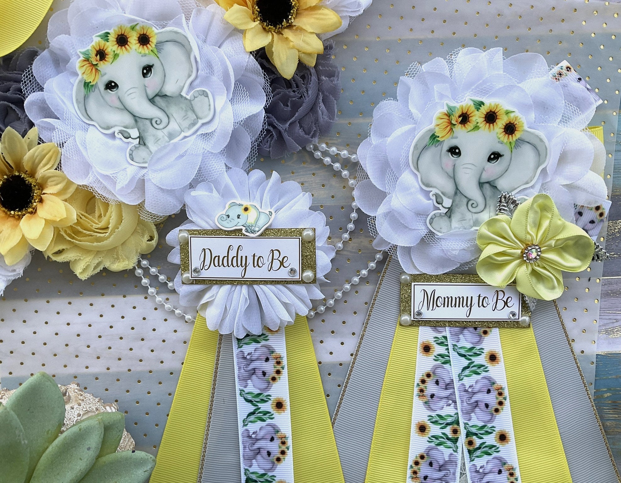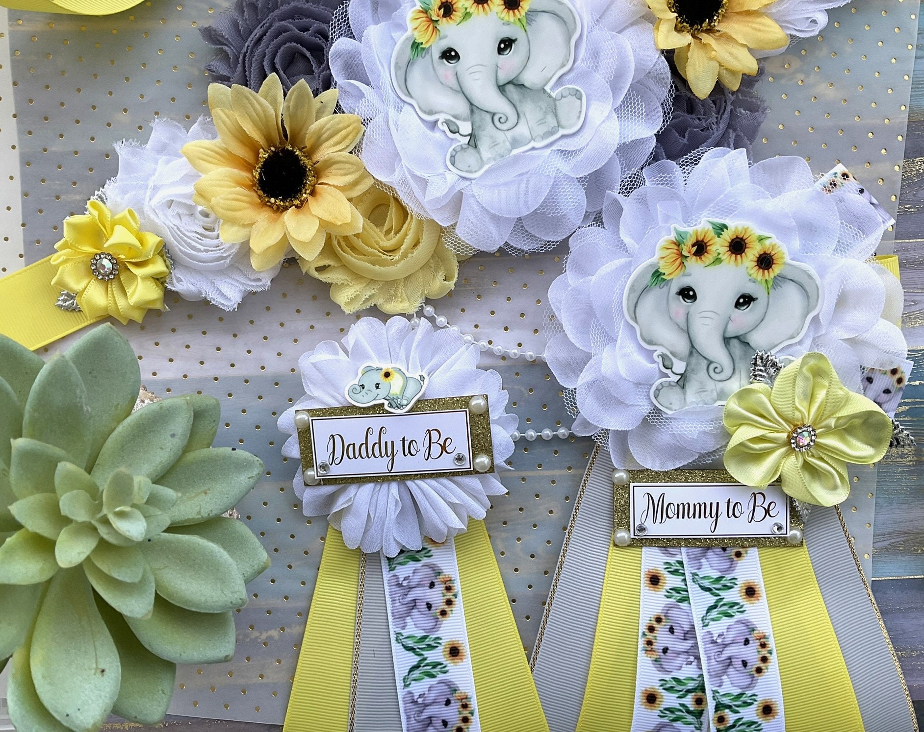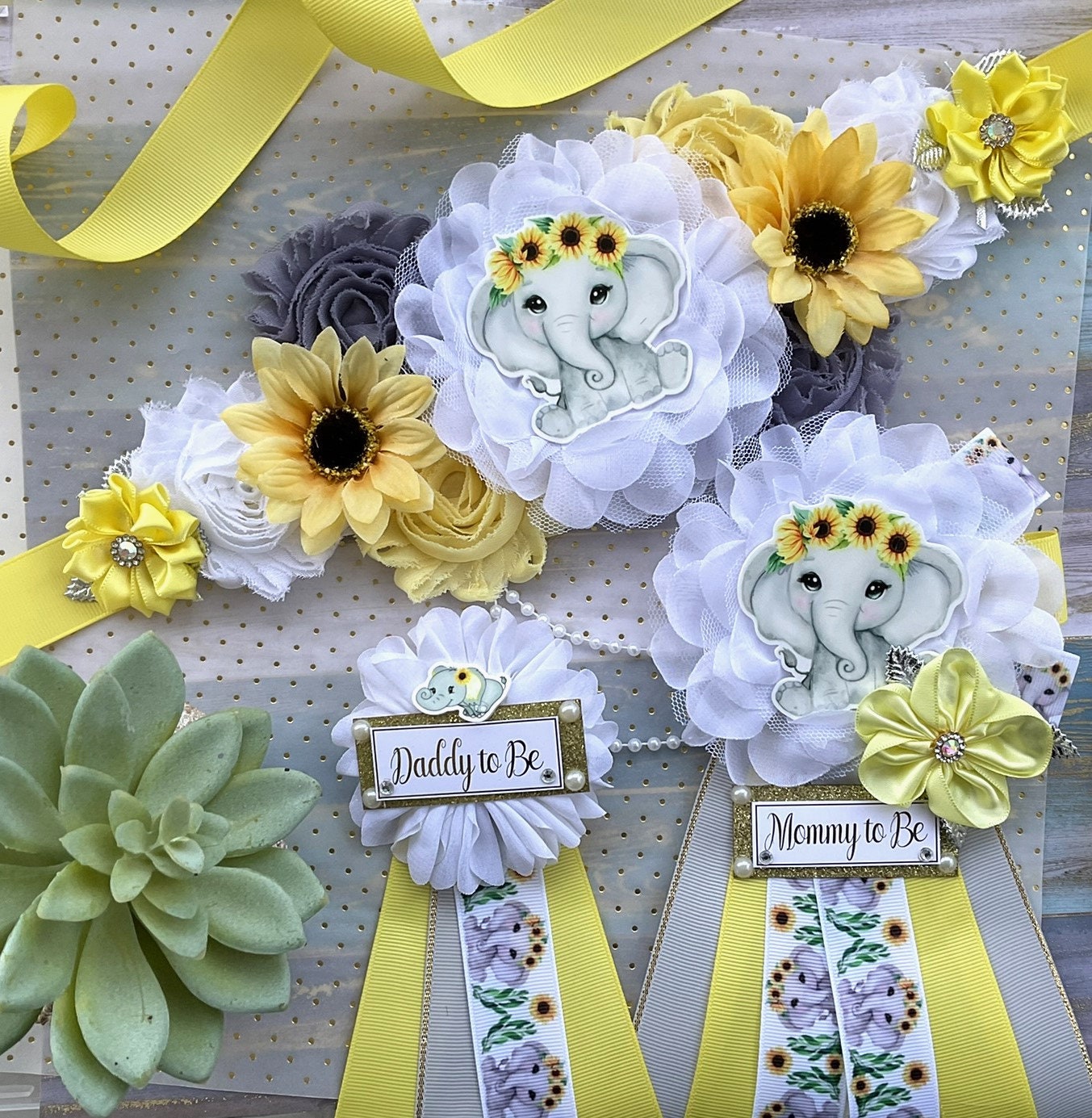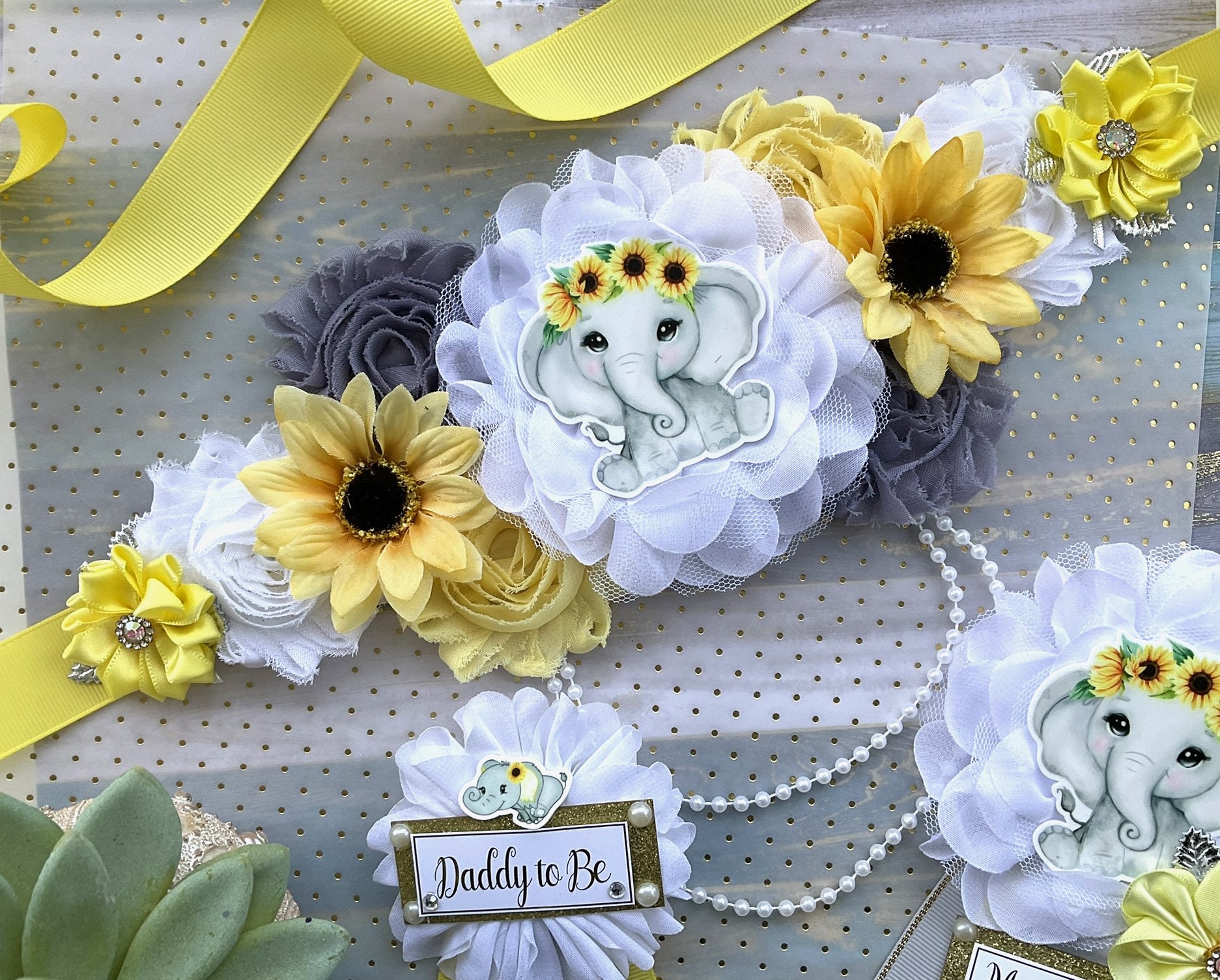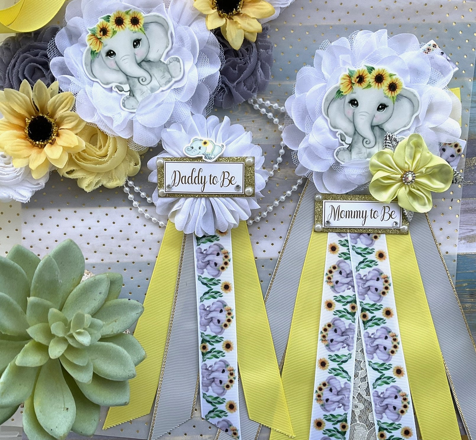 Elephant Sunflower Baby Shower, Yellow Grey Maternity Sash, Mommy To Be Ribbon, Daddy To Be Pin, Gender Reveal Sunflower Baby Shower, Custom